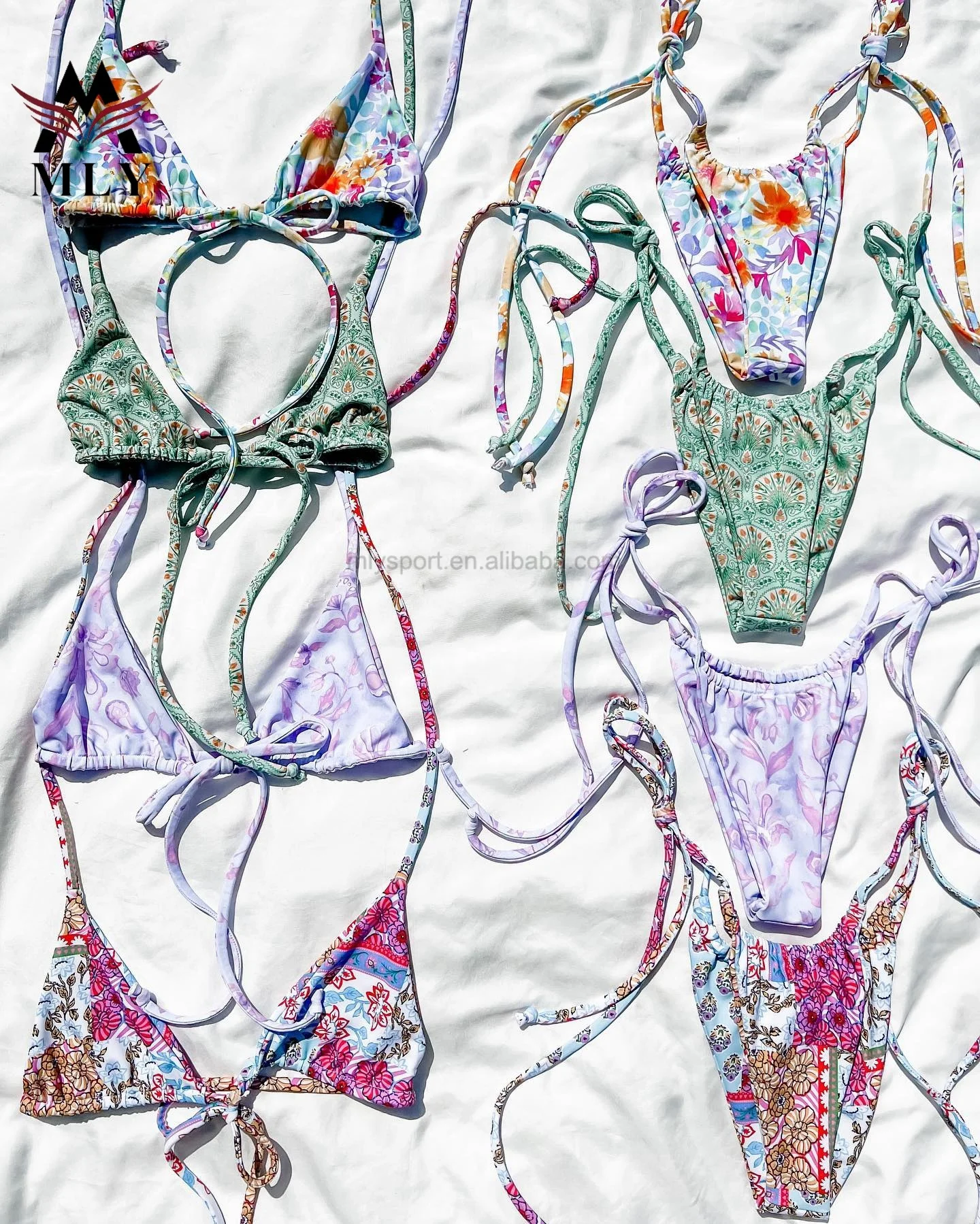MLY Custom Micro Bikini Set Allover Print Beach Swimwear for Women with Tie Side 2-Piece Custom Swimsuits