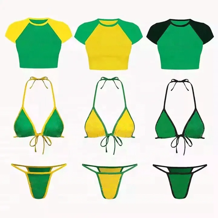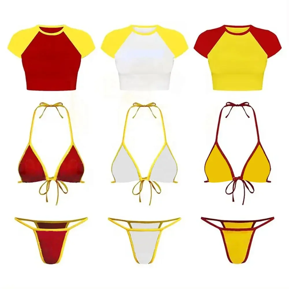 Customized Women's Tiger Stripe Bikini Top T-Shirt Swimwear Bathing Suits Sexy Bikini Sets Sequined Print Custom Swimwear