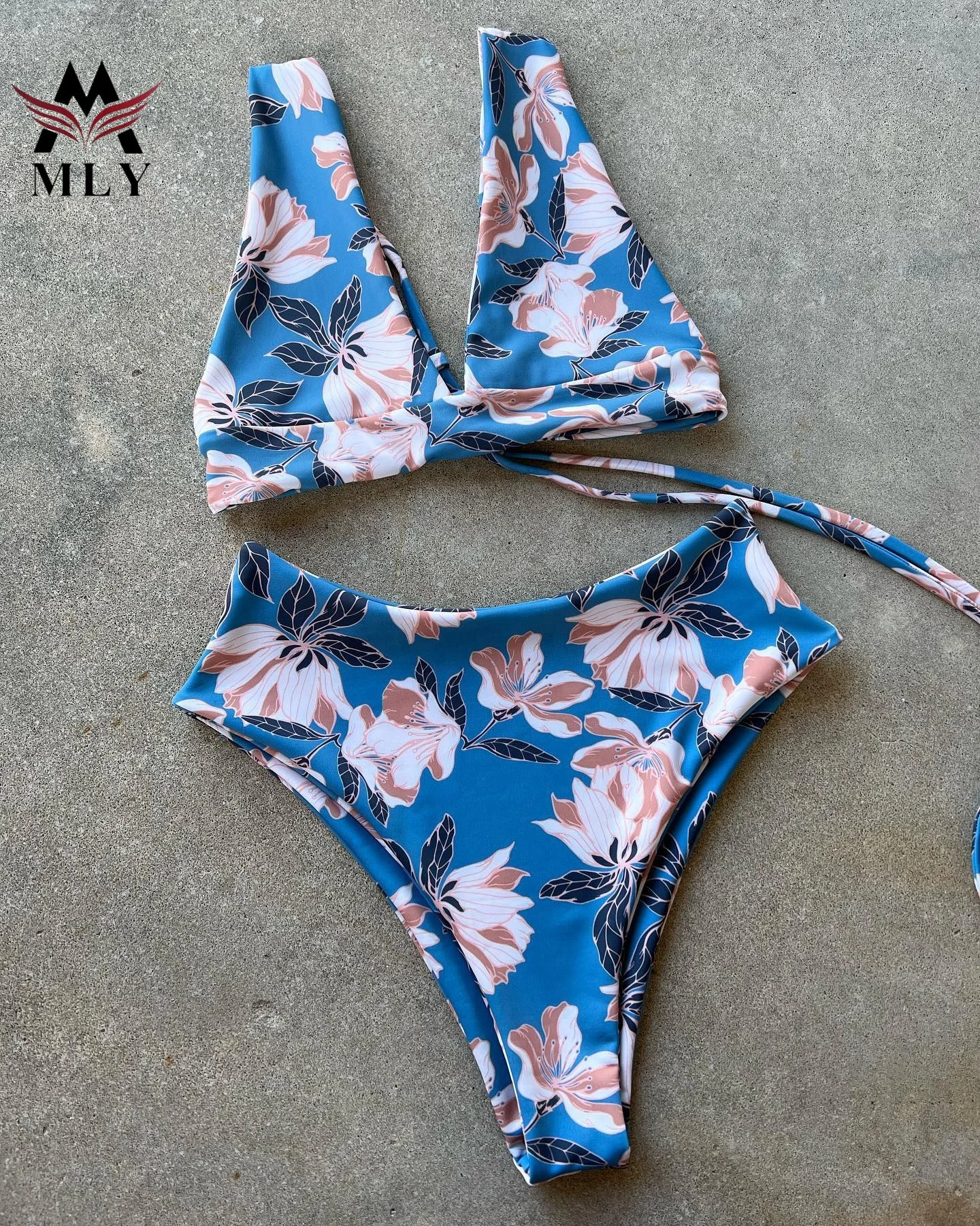 MLY Ruffle Bikini Summer Two Piece Suit Sexy Swimwear Bandage Biquini Triangle Swimsuit Printed Bathsuit
