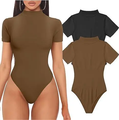 2026 for Hot-Selling European American Style Women's Solid Slim Fit Sexy Ribbed High Neck Short Sleeve Yoga Bodysuit