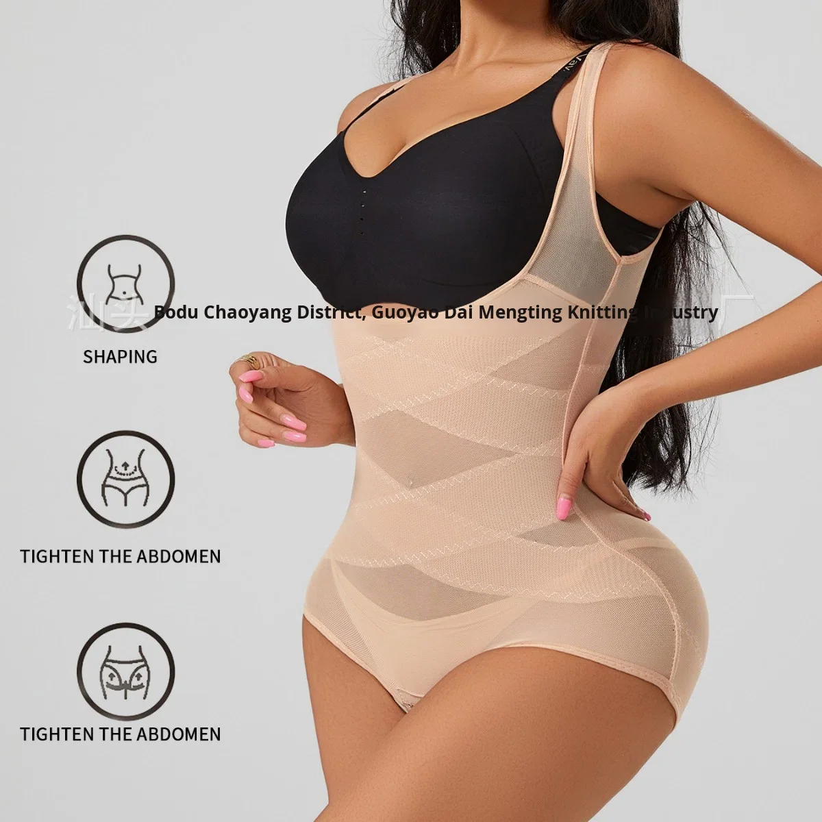 For Postpartum One-piece Bodysuit Buttoned Shapewear Women's Thin Mesh Waist Belly Control Fitness Yoga Large Size
