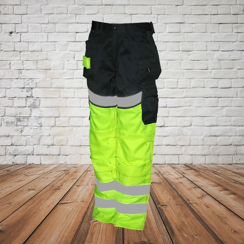 High Visibility European Style Womens Men Baggy Zip off Cargo Work Pants Reflective