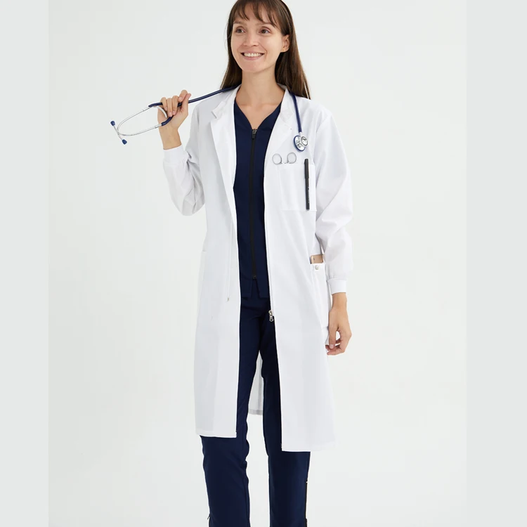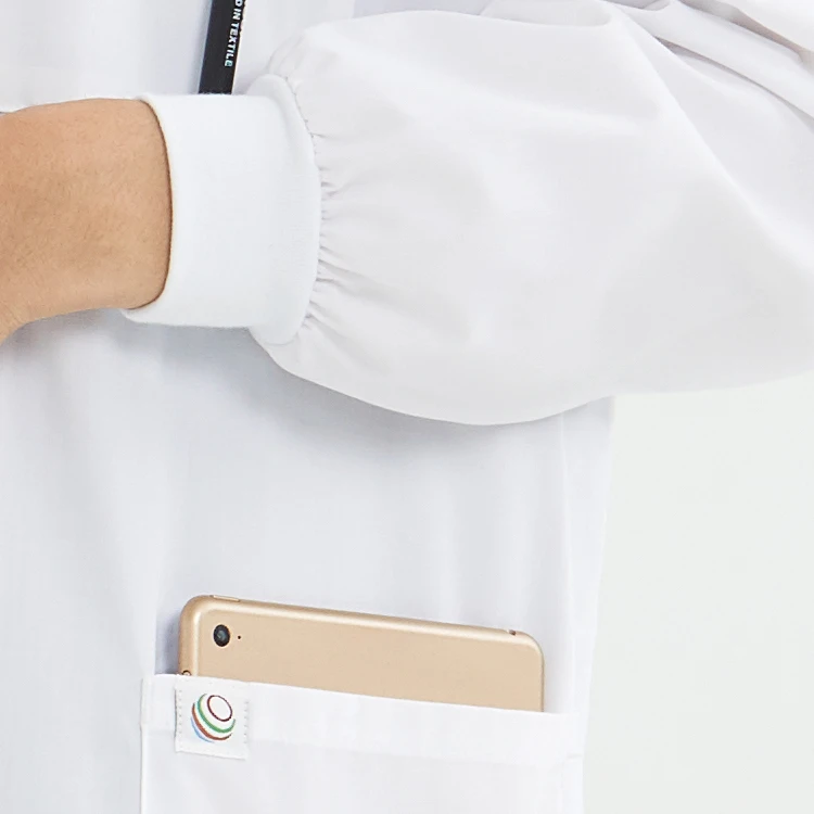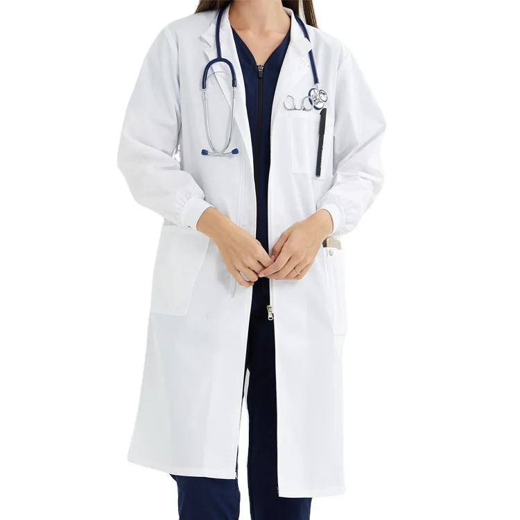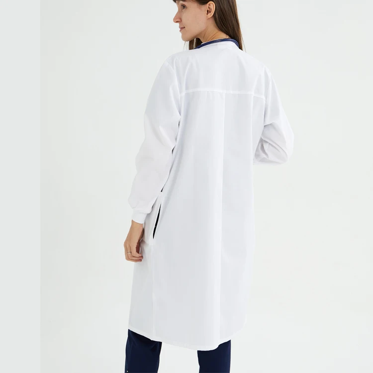 Women's Lab Coats Snap Closure 4 Pockets Elastic Cuffs Professional Medicas Long Sleeve Labcoats Scientist College