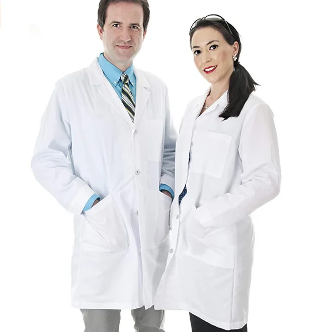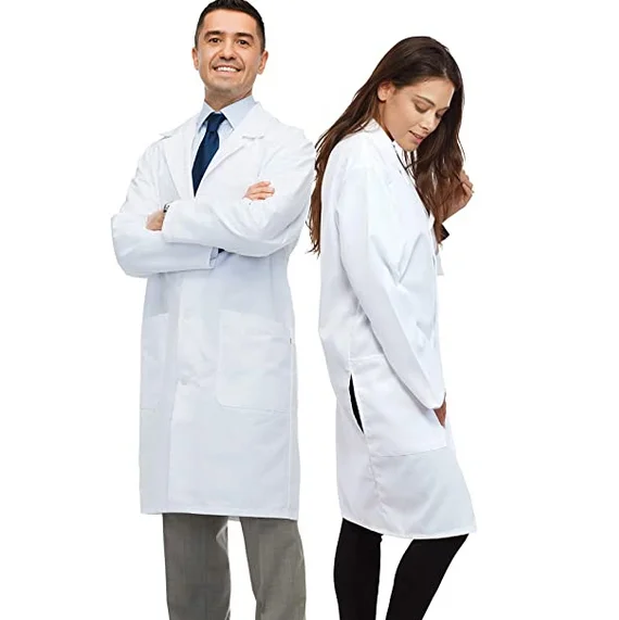 Lab Coat for Men and Women 40" Button Front Closure Unisex Lab Coat with 3 Pockets
