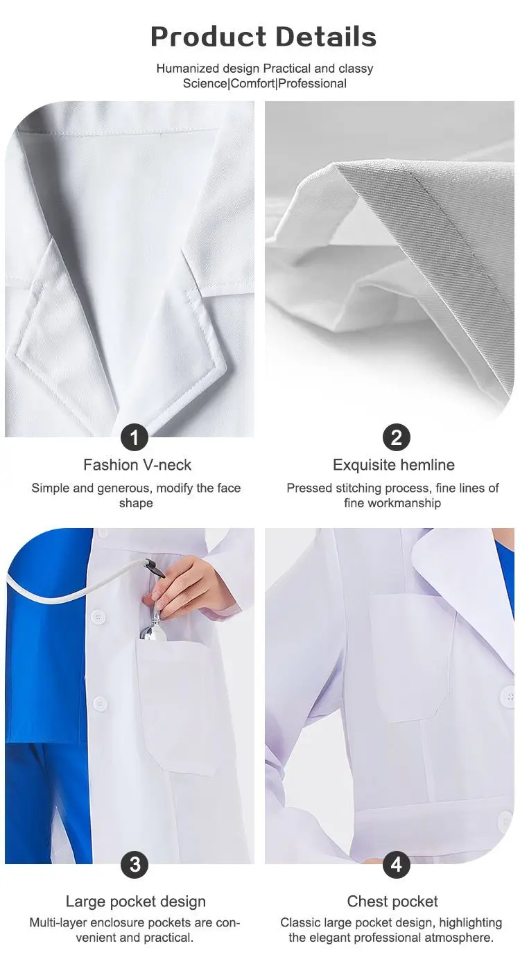 New Arrival Women's Printed Comfortable Long Sleeve White Doctor's Lab Coat Medical Gowns XL Hospital Uniforms