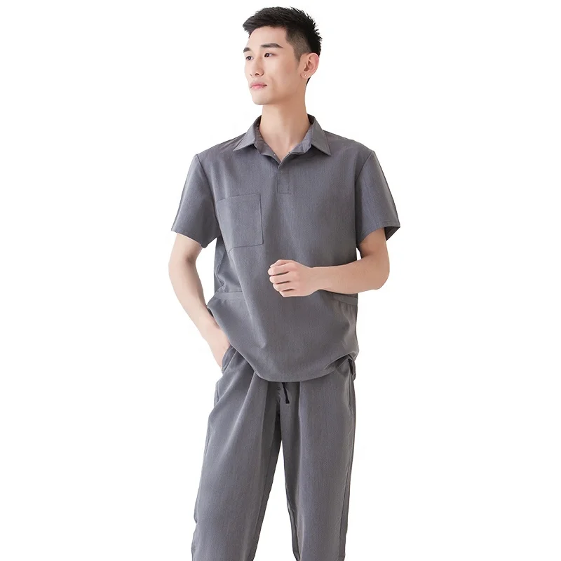 Men's Scrub Suits Quick Dry Woven Fabric Polyester/Rayon/Spandex Medical Uniform Doctor's Short Sleeve Salon Uniform