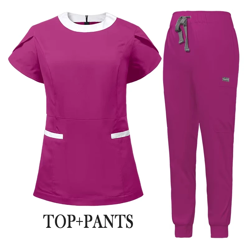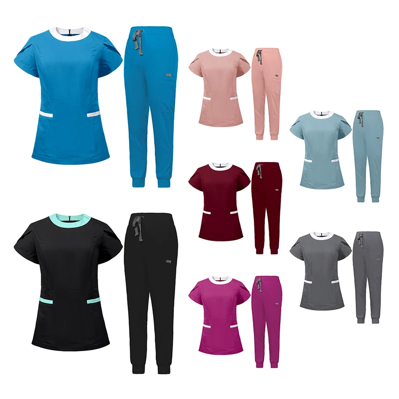 Wholesale Custom Logo Unisex Round Neck Top and Jogger Pant Hospital Scrub Sets With Rayon Blend Fabric Fashion Medical Uniforms