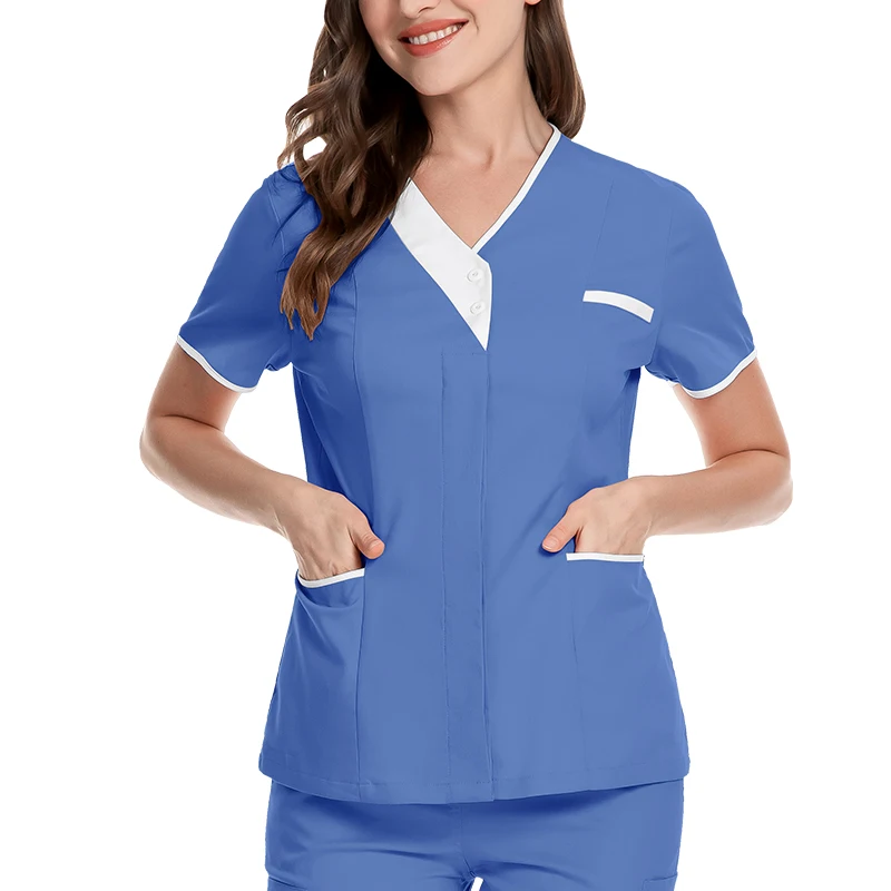 Breathable 35%Cotton Solid Scrub Tops Women Medical Nursing Uniform Tops Short Sleeve Hospital Dentist Customize Wholesale Scrub