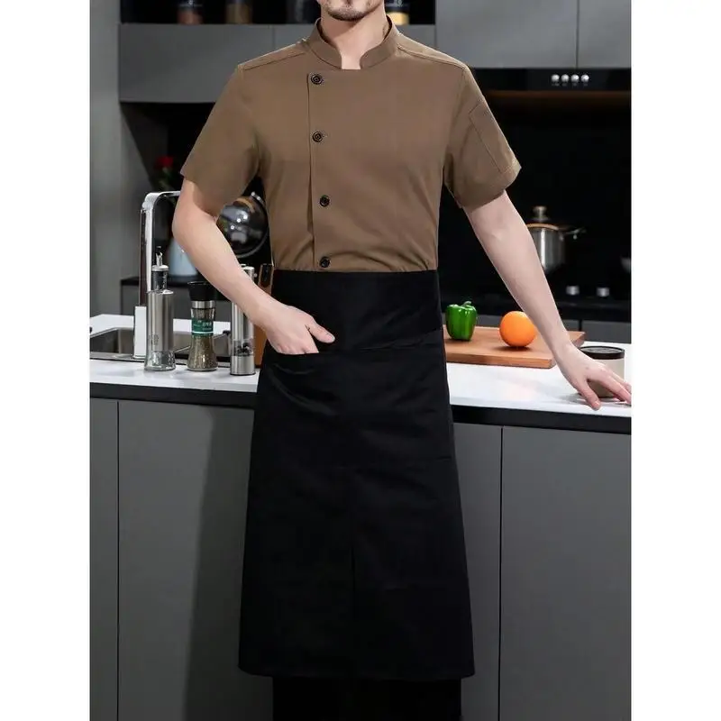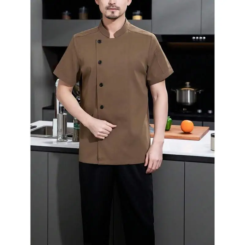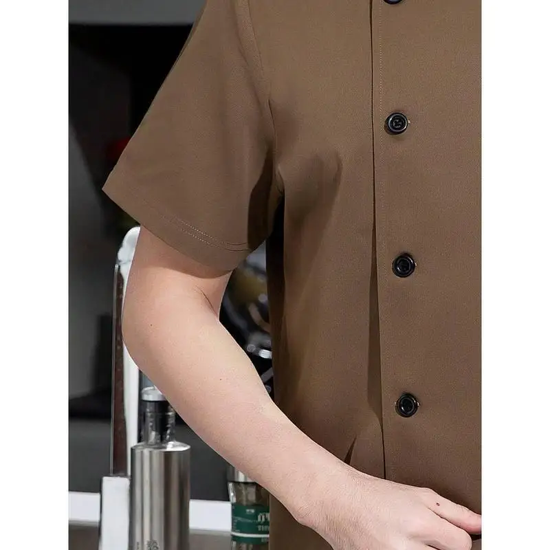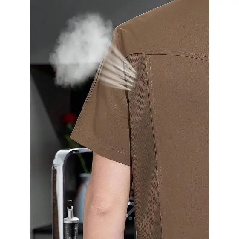 Customize Logo Mens Khaki Fireproof Breathable Short Sleeve Chef Uniform with Breathable Mesh Back