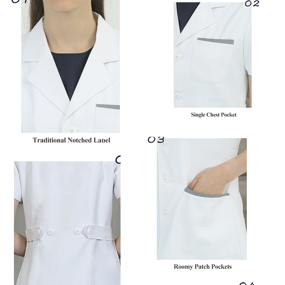 Wholesale Women Long Short Sleeved White Coat High Quality Hospital Uniform Clinic Nurse Scrub Working Clothes Student Lab Robe