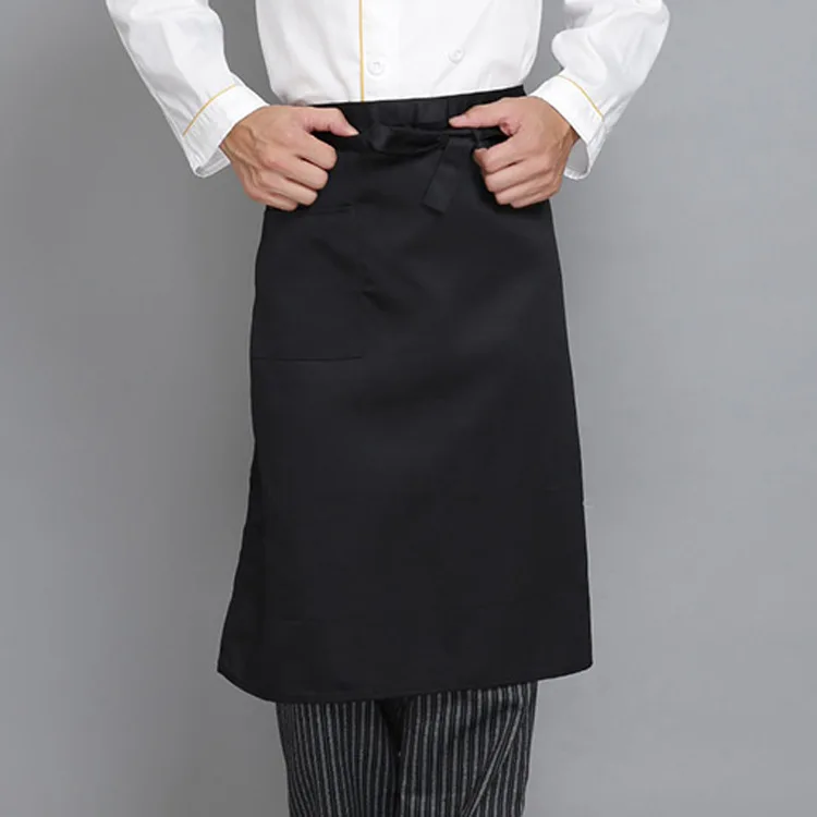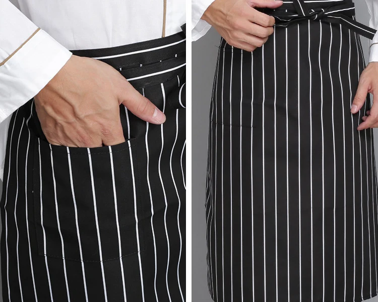 Cheap Bulk Wholesale Pocket Polyester Waiter Chief Black White Stripe Short Half Waist Aprons