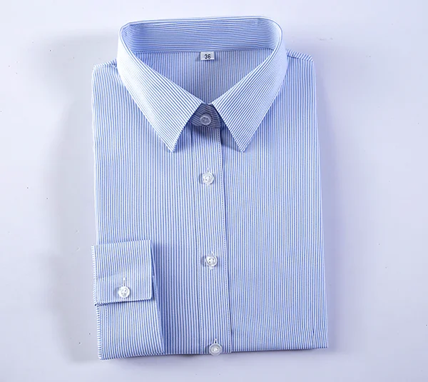 Wholesale Formal Dress Shirts Blue Stripe High Quality Long Sleeved Office Business Women's Shirts