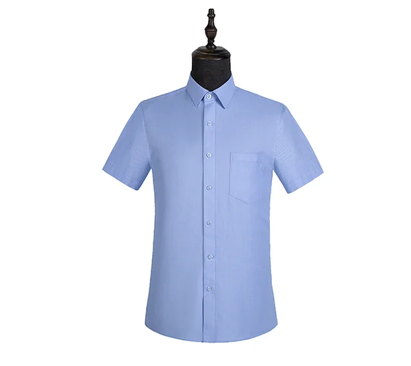 Customized Wholesale Men Formal Dress Shirts Blue Short Sleeved 60% Office Business Men's Shirts