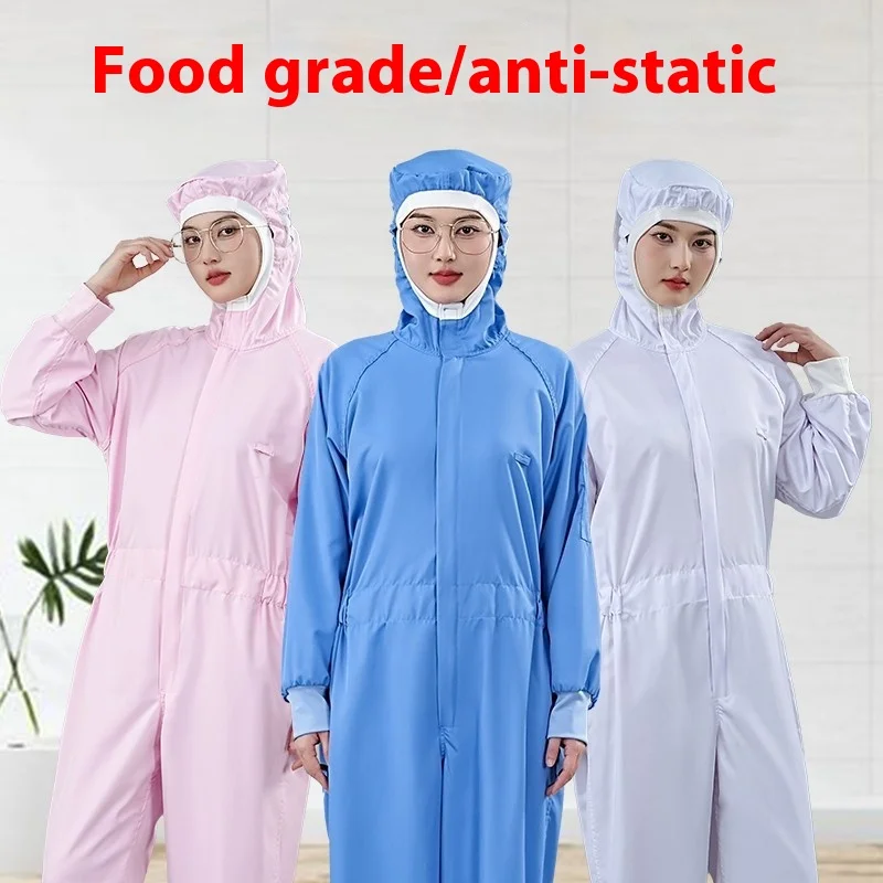 Food Factory Dustproof Garment Food Processing Breathable Anti-Static Polyester Coverall Seamless Fusing Cleanroom Workwear