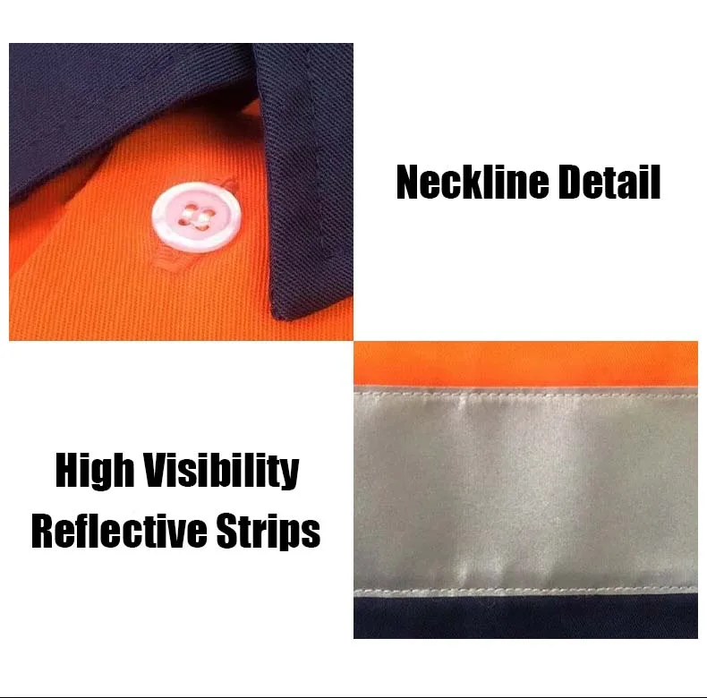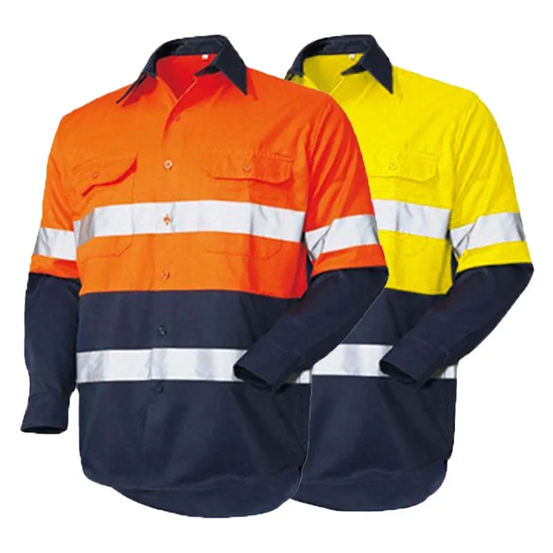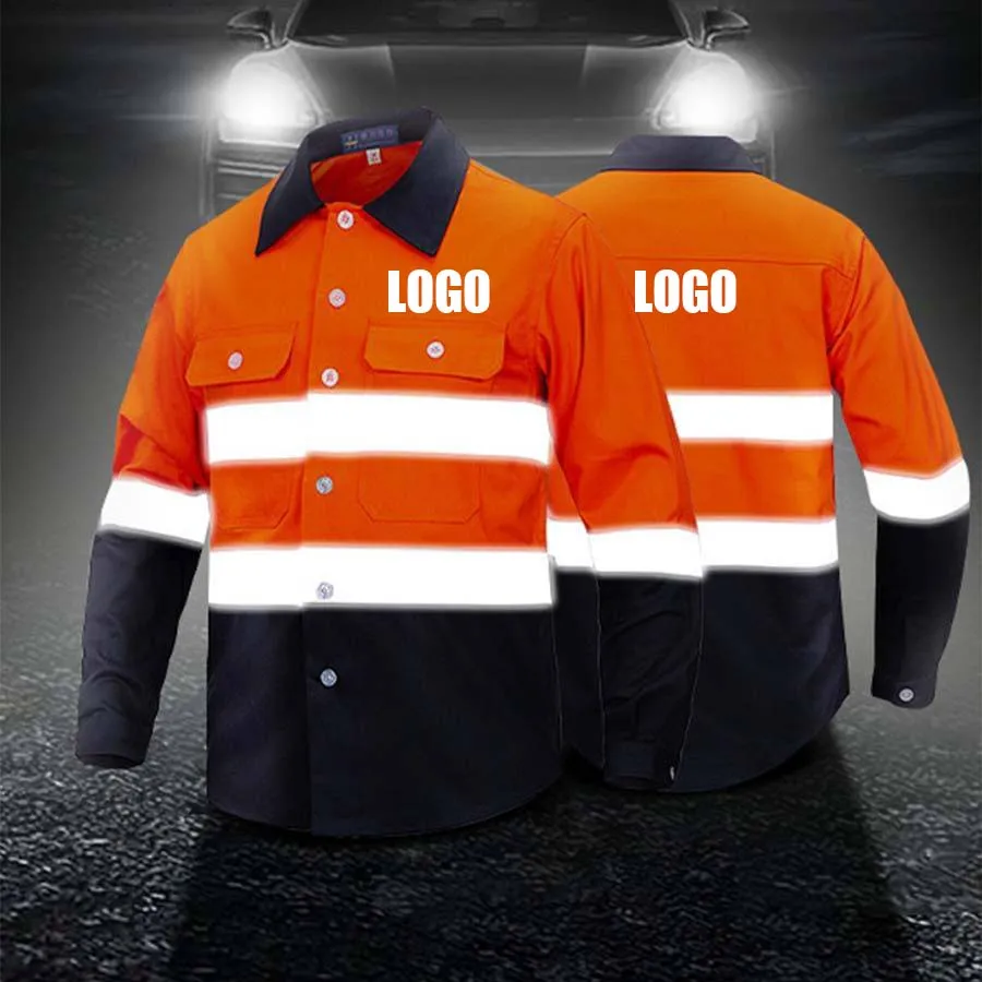 100% Cotton Fluorescent Breathable Workwear Custom Logo Reflective Safety Clothes Hi Visibility Construction Mining Industrial
