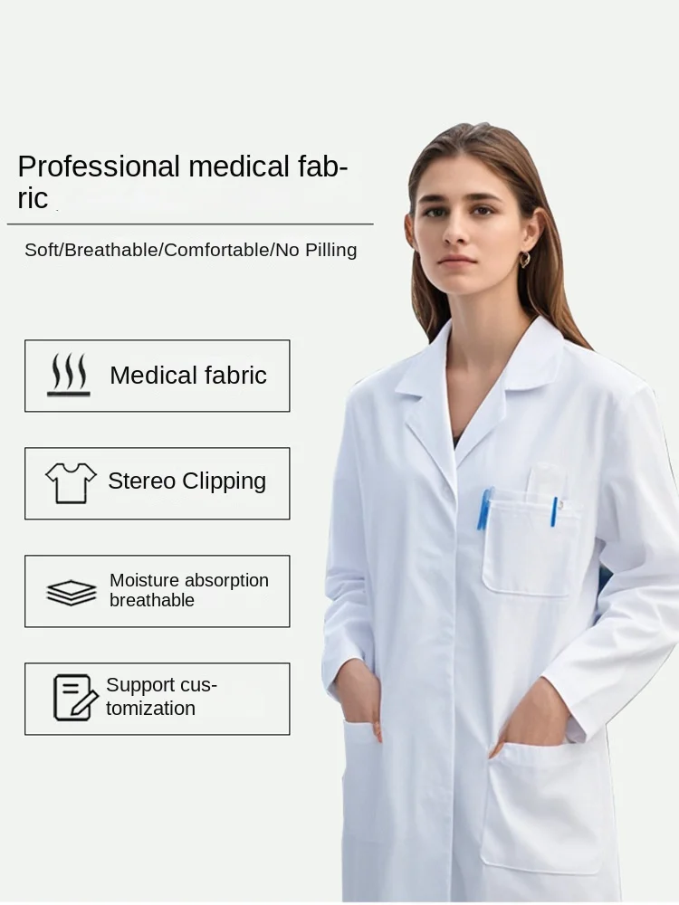 Women'S Men Long Sleeve White Doctor Medical Coat Pharmacy Pet Shop Beauty Overalls Lab Coat White Labcoats Hospital Uniforms
