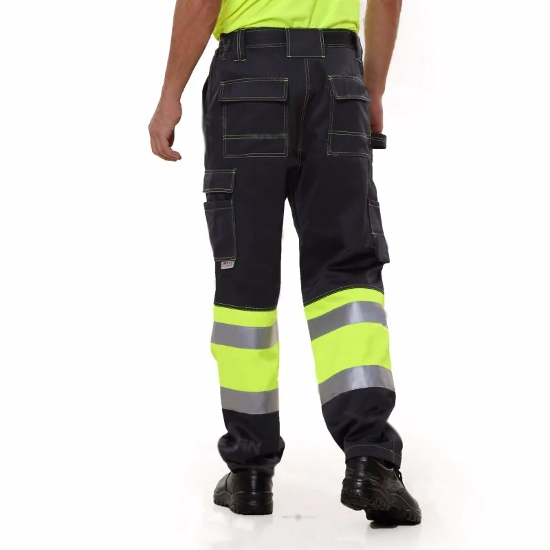 Custom Logo 8 Pockets Reflective Hi-Vis Safety Work Pants Trousers Polyester Waterproof Heavy Duty Unisex