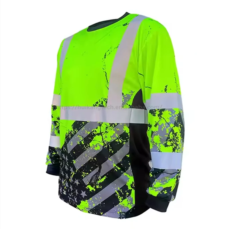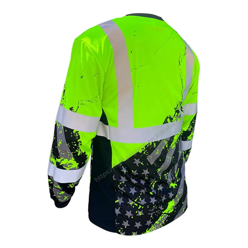 360 American Grit ANSI Class 3 T-shirt UPF 40 UV Protection Hi Vis Workwear Breathable Hi-Viz Reflective Safety Long Sleeve Tee