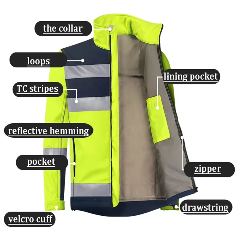 Hi Vis Workwear Zipper Jacket High Visibility Safeti Roadway Reflective Safety Clothing Working Clothes for Men