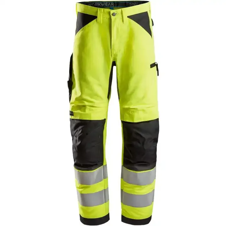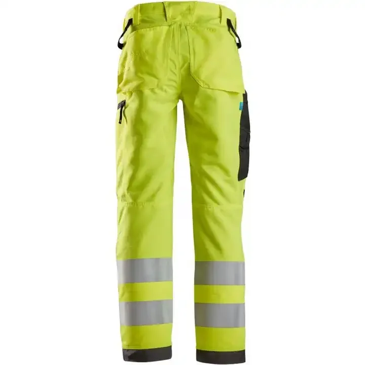 Polyester Cotton Hi-Vis Yellow Twill Long Pants Men Safety Cargo Pants Multi Pockets Workwear Maintenance Pants Men