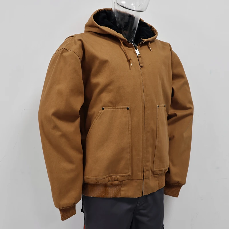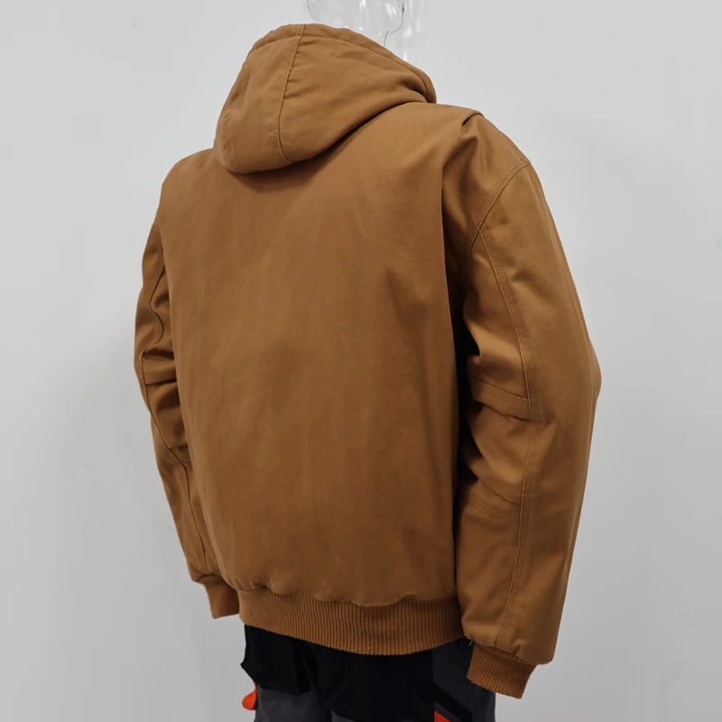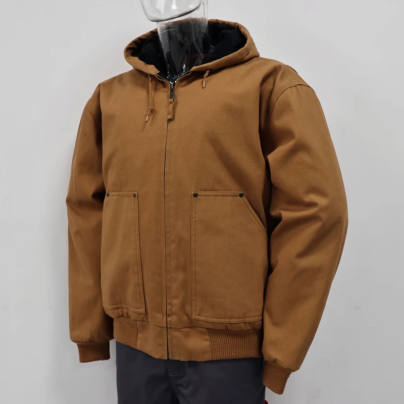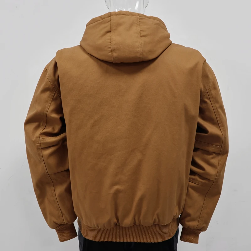 High Quality Winter Outdoor Workwear Men's Bomber Jacket Work Uniform Heavy-weight Canvas Hooded Jacket