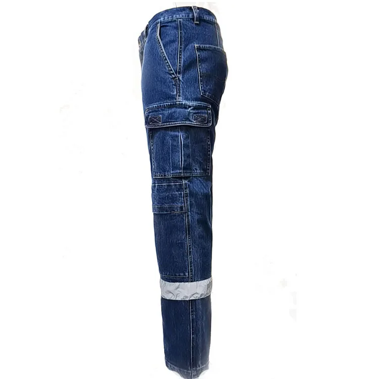 Hi Vis Reflect Construct Mechanic Safety Uniforms Clothes Elastic Stretch Denim Cargo Mens Workwear Male Work Pants Men's Jeans