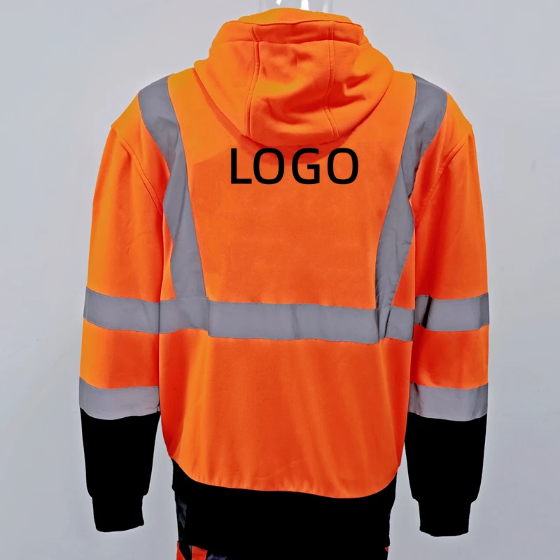 Custom logo Workwear Construction Work Uniform Fleece Sweatshirt Jacket Zipper Hoodies Roadway Reflective Safety Clothing