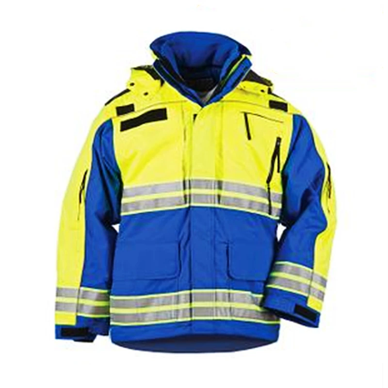 High Visibility Yellow Safety Workwear Uniform Men Safety Workwear Double Layer With Fleece Liner Security Patrol Safety Jackets
