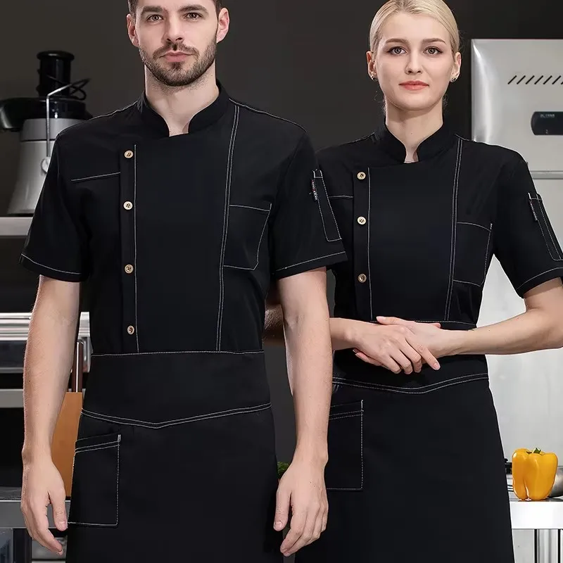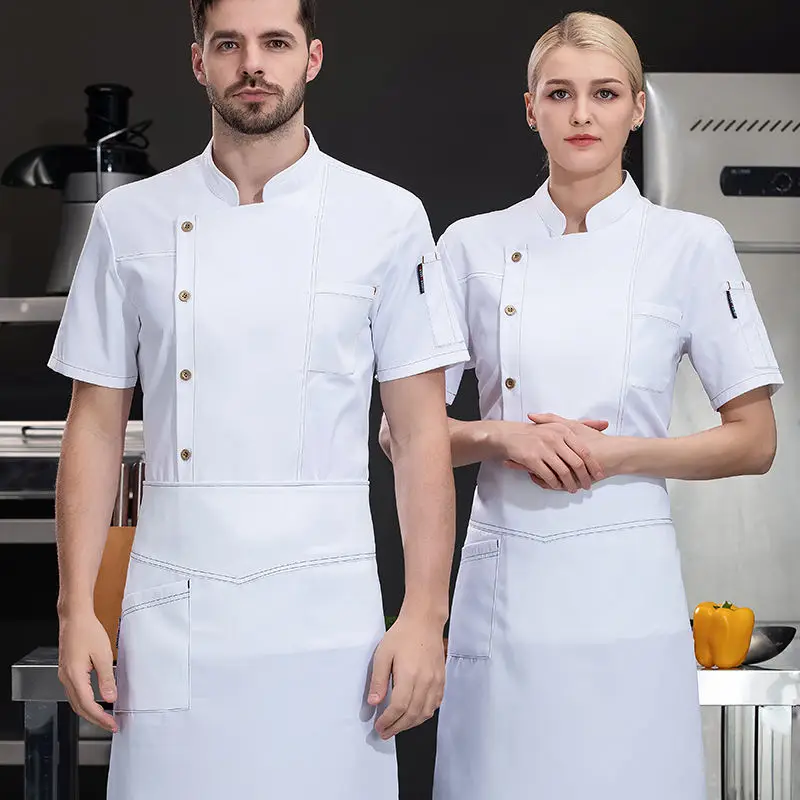 Hot Selling Customizable Short Sleeves Chef Overalls Chef Uniform Hotel Uniform Restaurant Bar Uniform Unisex Chef Coat