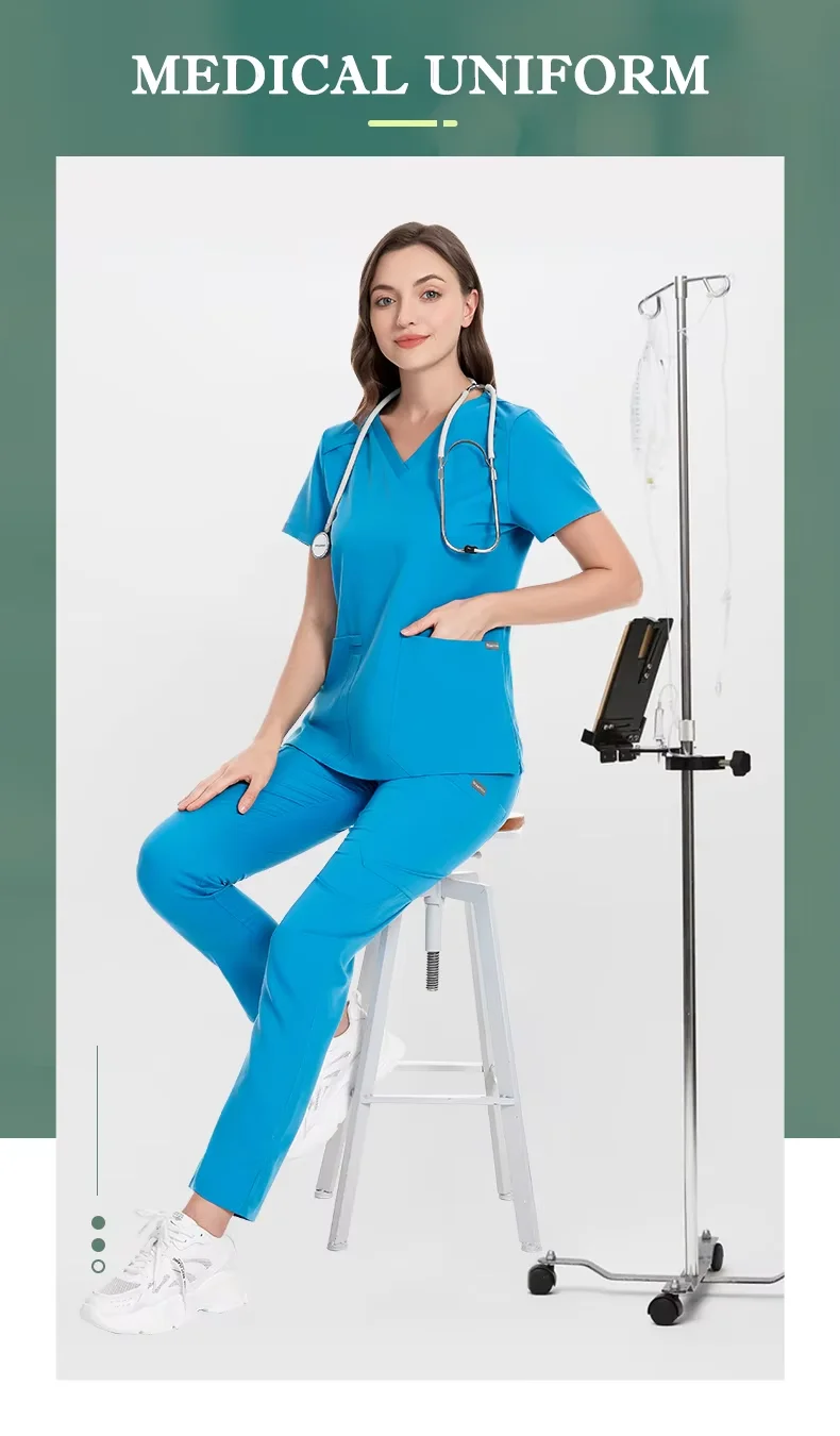 Premium Unisex Hospital Uniforms Anti-Wrinkle Soft Nursing Scrub Set Washable Polyester Rayon Spandex