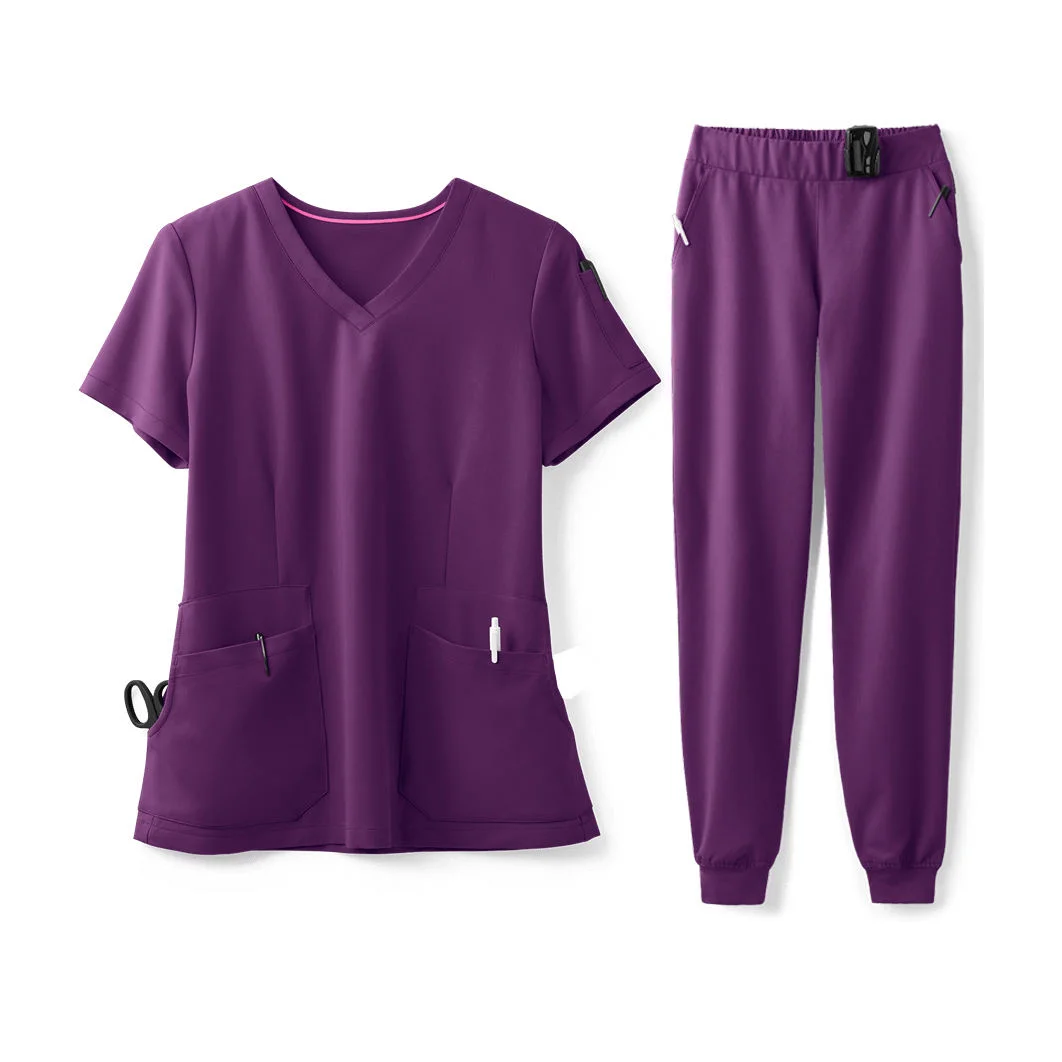 Women's Long-Sleeve Nursing Scrubs Anti-Wrinkle Stretchy Knitted Uniform Set Nurse's Clothing