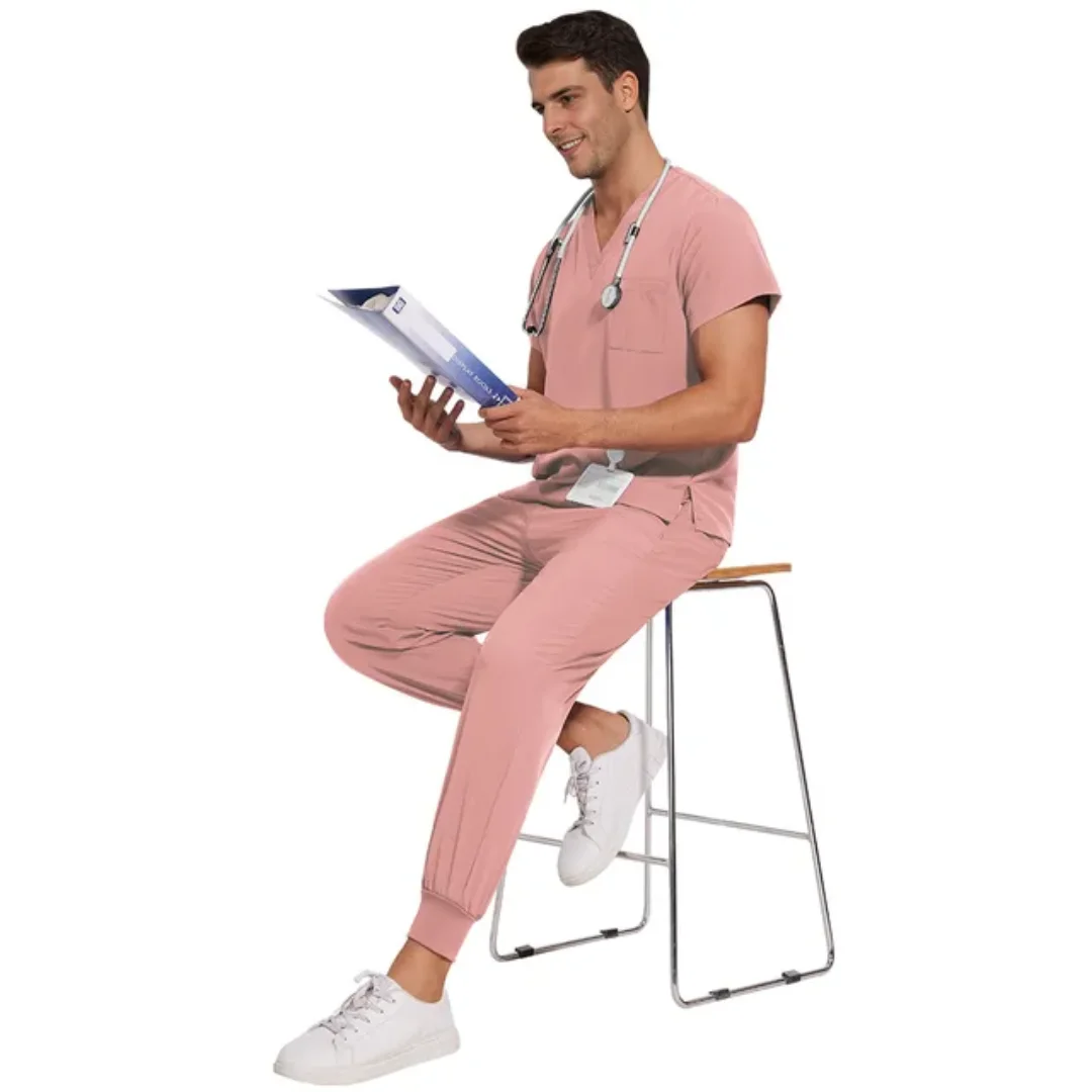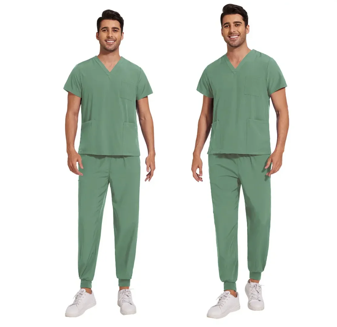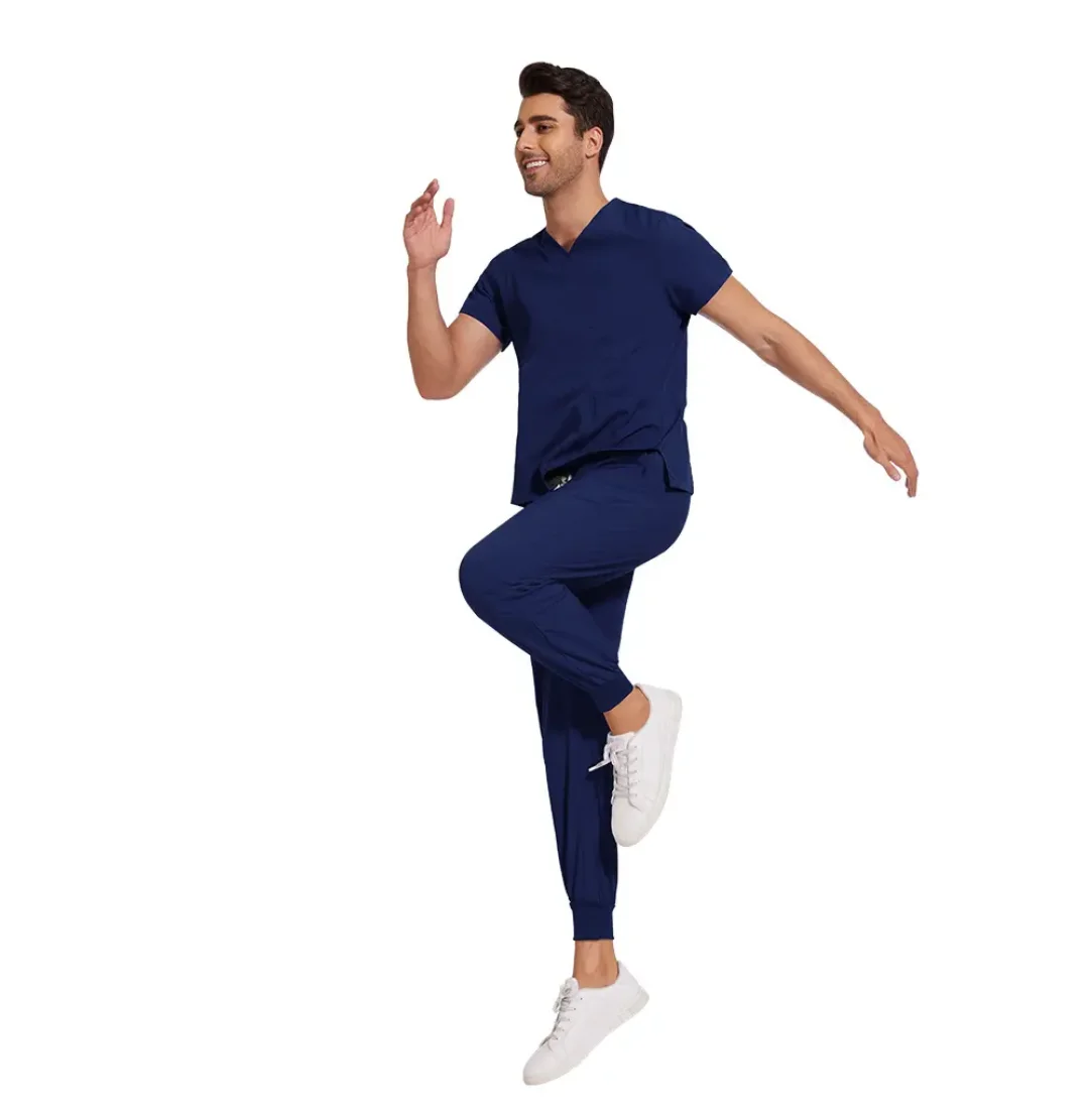 Modern Anti Bacterial Stretchable Popular Clinic Work Scrubs Beauty Salon Men's V Neck Three Pockets Work Scrubs Uniforms Sets