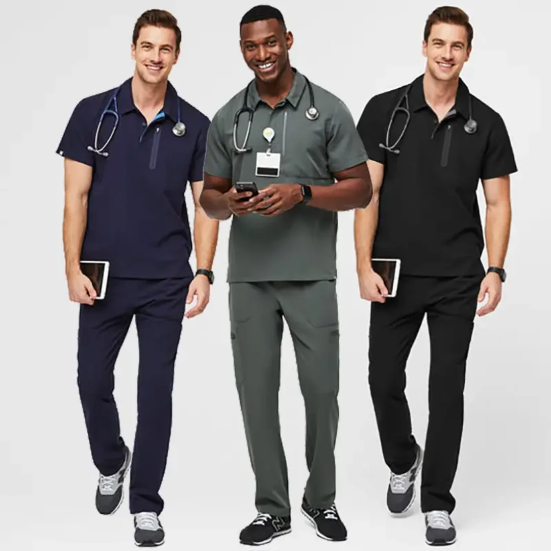 Stylish Big Size Pet Club Spa Doctor Scrubs Uniform Nurses Professional Spandex Flip Collar Button Closed Medical Uniform Sets