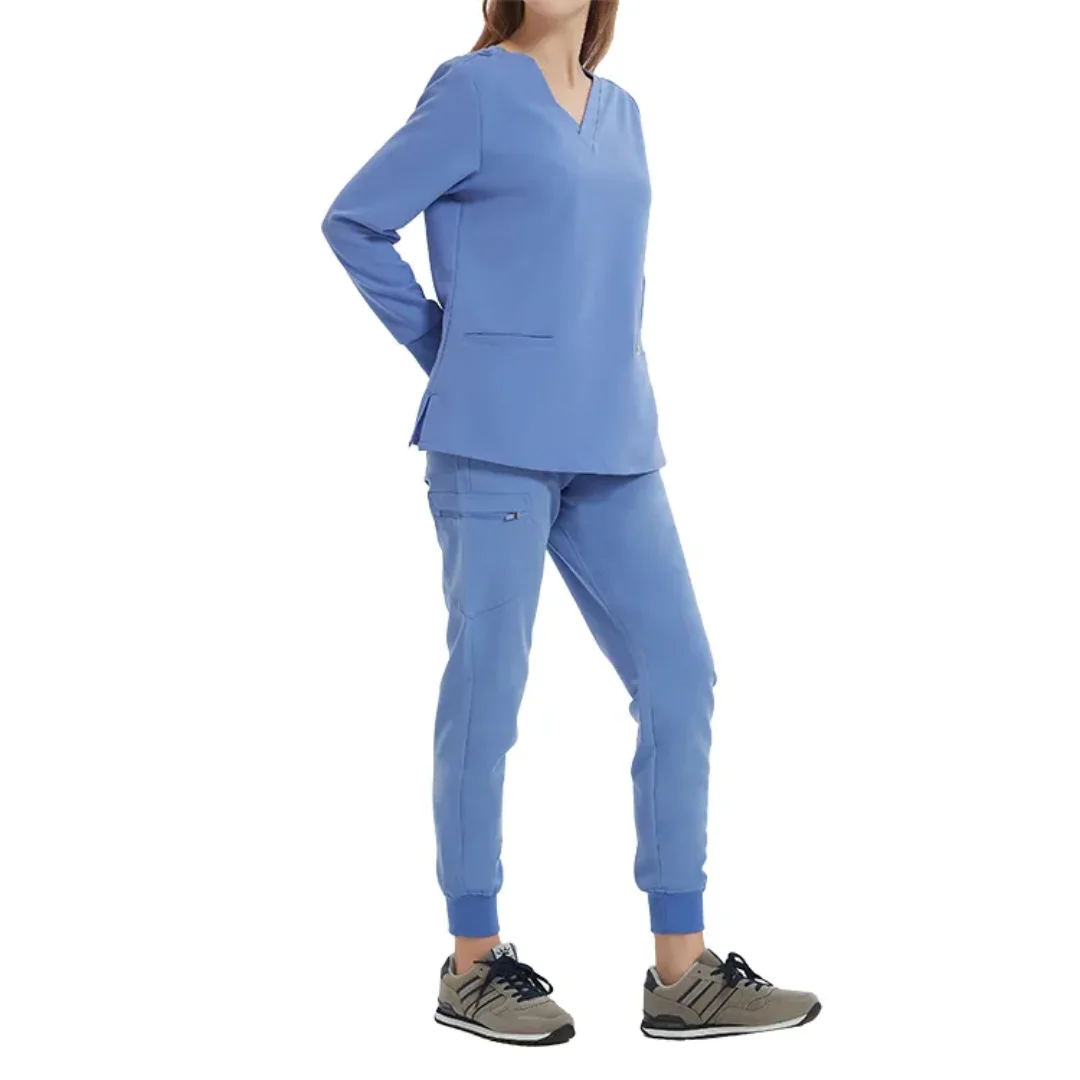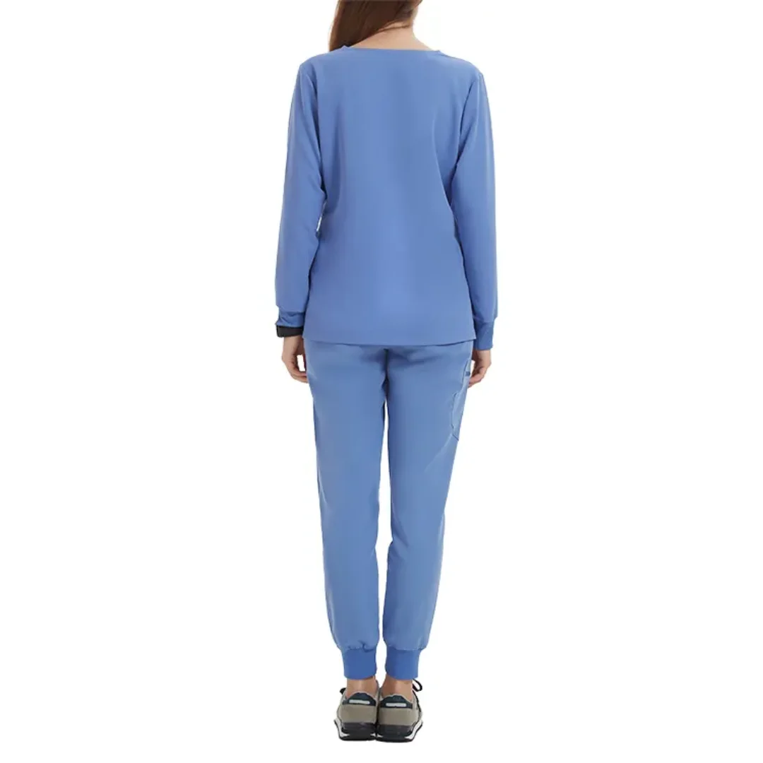 Hot Sale Blue Long Sleeve 72 Polyester 21 Rayon 7 Spandex Urban School Medical Scrubs Hospital Uniforms