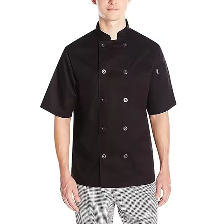 Custom Men's Short Sleeve Chef Coat Professional Button-Down Jacket for Restaurant Kitchen and Bakery Baking Cook Uniform