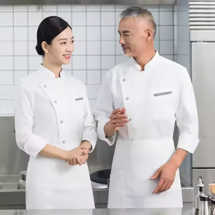 Factory Wholesale Unisex Kitchen Chef Uniform Bakery Cook Long Sleeved Poly Cotton Breathable Shirt Chef Jacket Clothes
