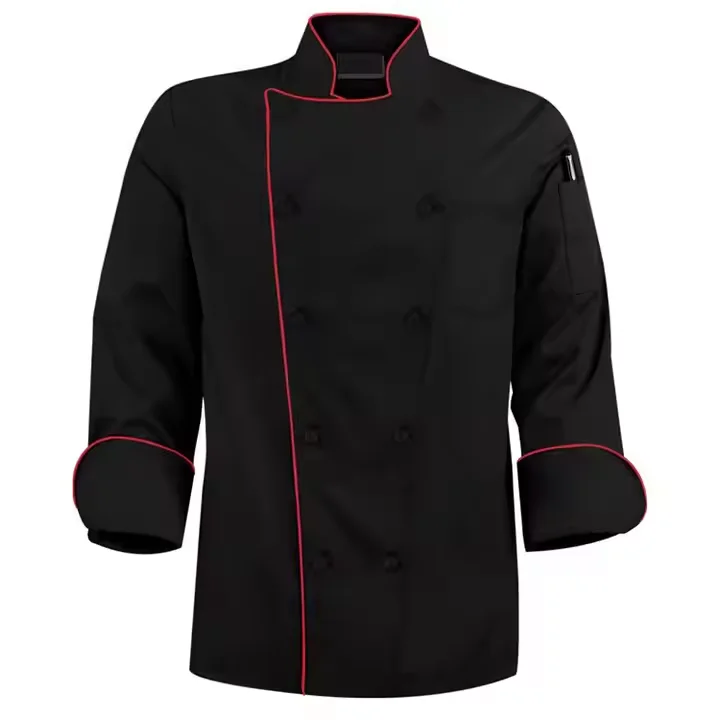 OEM&ODM Women and Men Black Chef Uniform Restaurant Cook Top Coat Workwear Unisex Chef Jacket Working Uniform for Kitchen.
