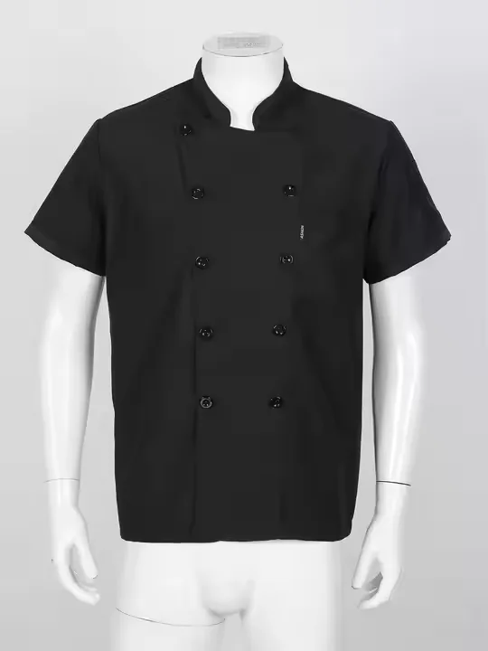 High Quality Black Poly Cotton Custom Logo Unisex Chef Jacket Restaurant Hotel Uniforms Men Classic Waiter Coats