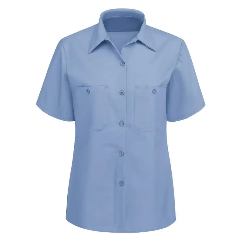 Breathable Blue Women's Cotton Short Sleeve Work Shirt Button up Singlet Mining Mechanic Shirt