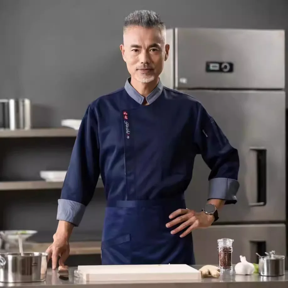 Customized High Quality Korean Restaurant Catering Long Sleeve Chef Jacket Pizza Dining Hall Kitchen Chef Uniform