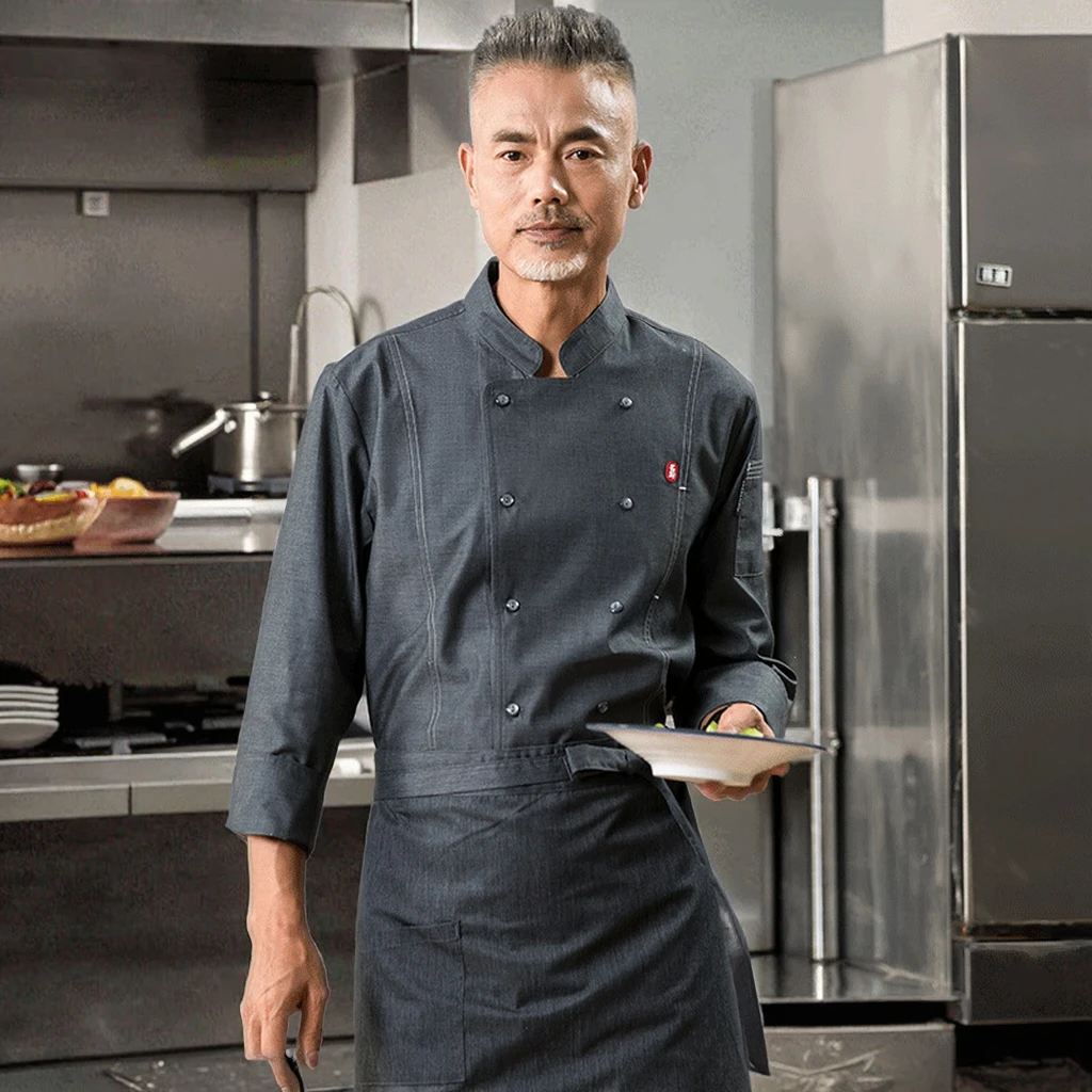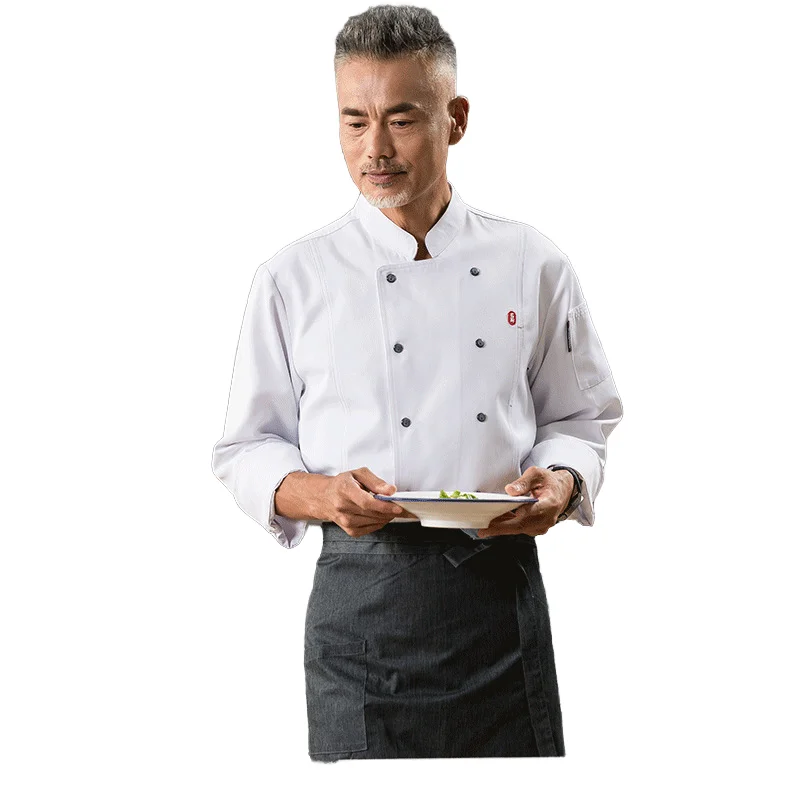 Breathable Winter Autumn Long Sleeve Kitchen Double Breasted Hotel and Restaurant White Chef Uniforms