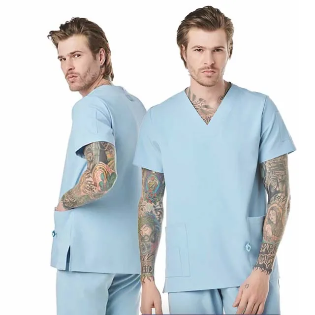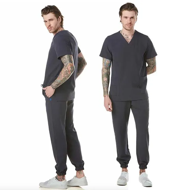 Adar Short Sleeve Navy Blue Grey Men Nurse Doctor Scrubs Uniforms Sets Medical Scrubs Work Uniform Set