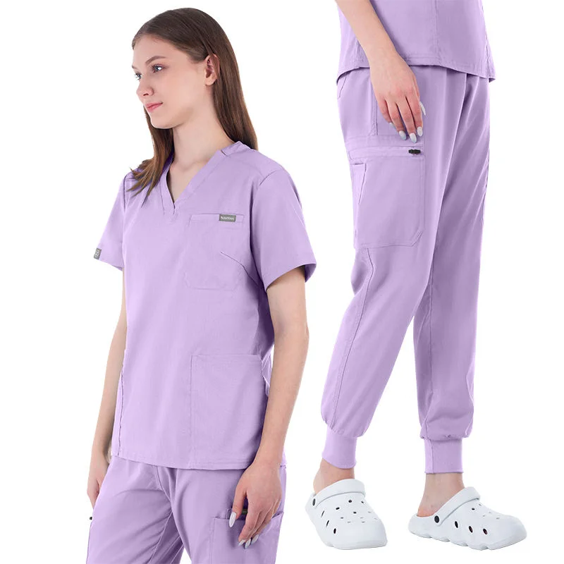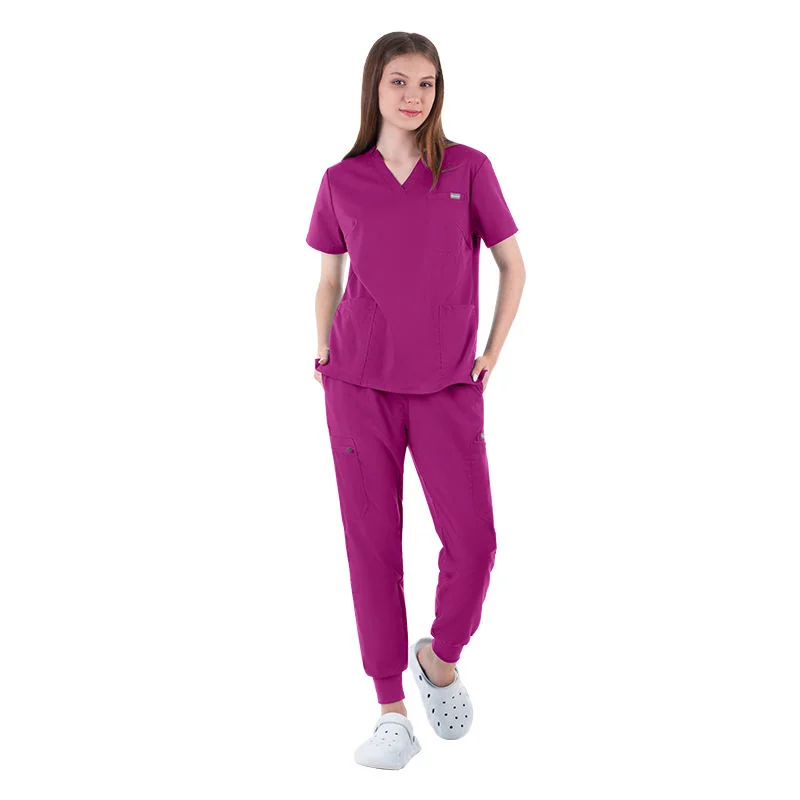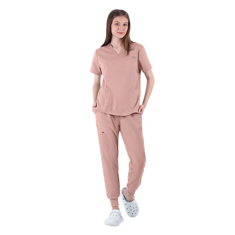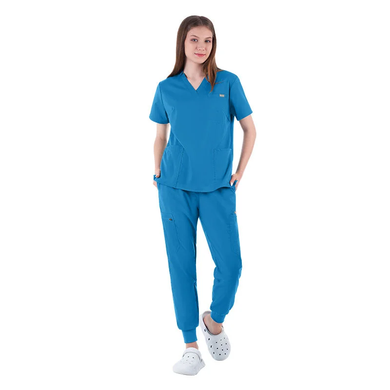 Women's Custom V-Neck Hospital Nurse Uniform Scrubs Polyester Rayon Spandex with Elastic Logo Scrub Sets