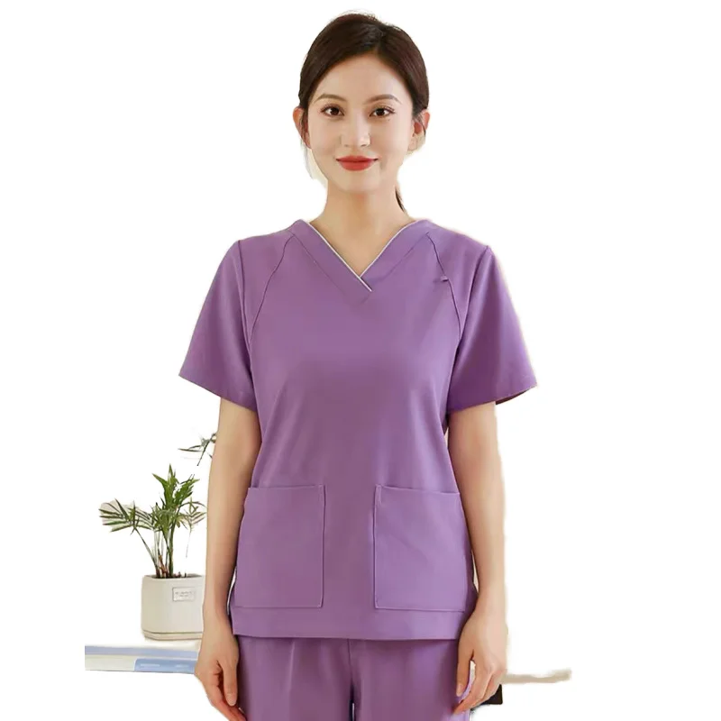 Anti - Wrinkle Fashional Women's Straight Leg Pants Spa Nurse Uniform V Neck Slim Fit Scrub Sets Cargo Petti