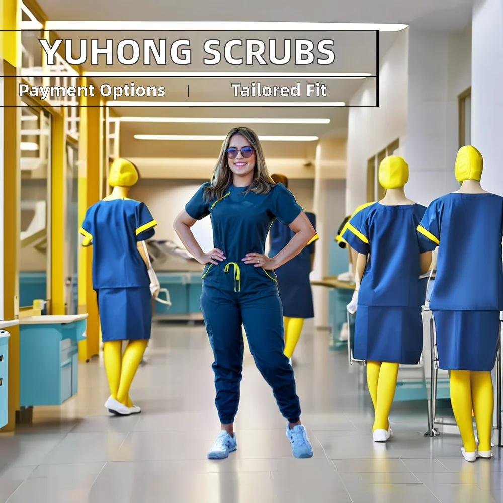 YUHONG Comfortable Unisex Hospital Set Women's Nurse Pants Men's Scrubs Woven Doctor Top Bottom Convenient Nursing Scrubs
