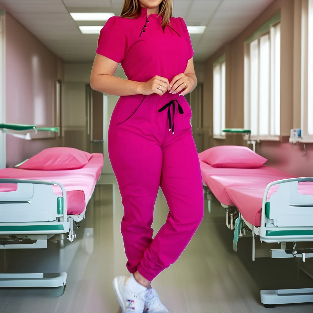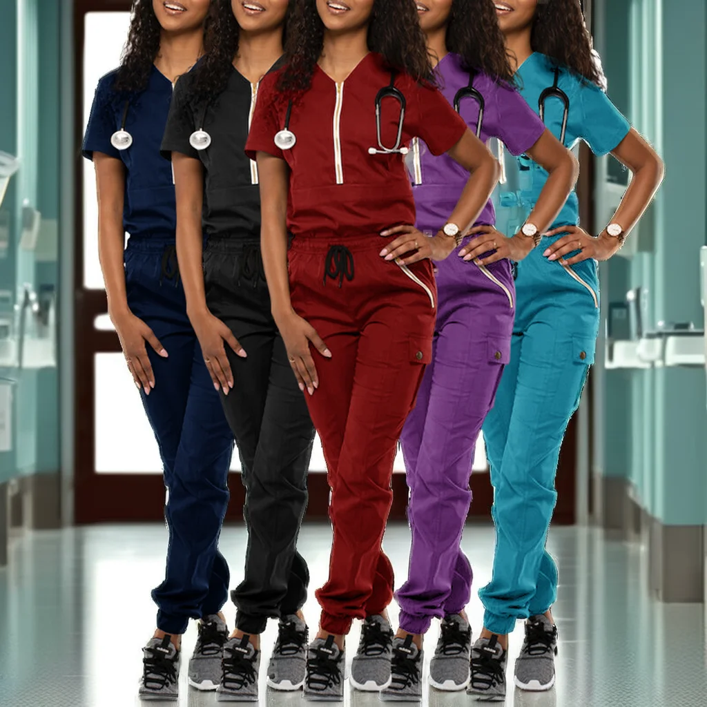 2026 Unisex Comfortable Nurse Scrubs Jogger Sets Stylish Short Sleeve Zipper Scrub Uniforms for Hospital Workers