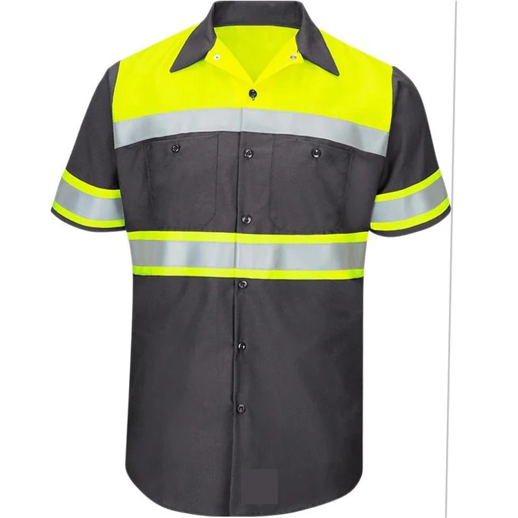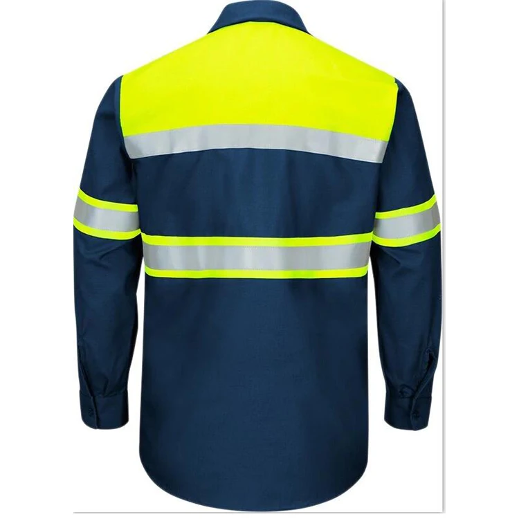 Breathable Worker Long Sleeve Work Shirts Reflective Tape Work Shop Barber Reflective Work Shirt Shirts Blue