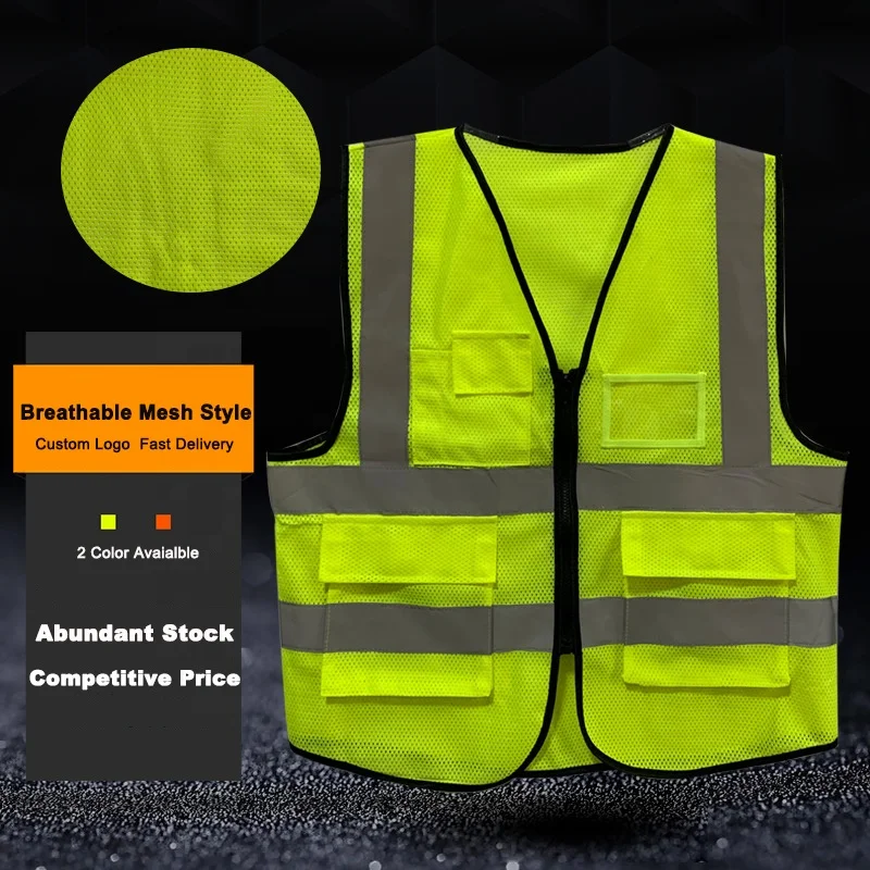 Wholesale Engineer Work Vest Cheap Safety Reflective Vest Adults Fluorescent Yellow Reflective Vest