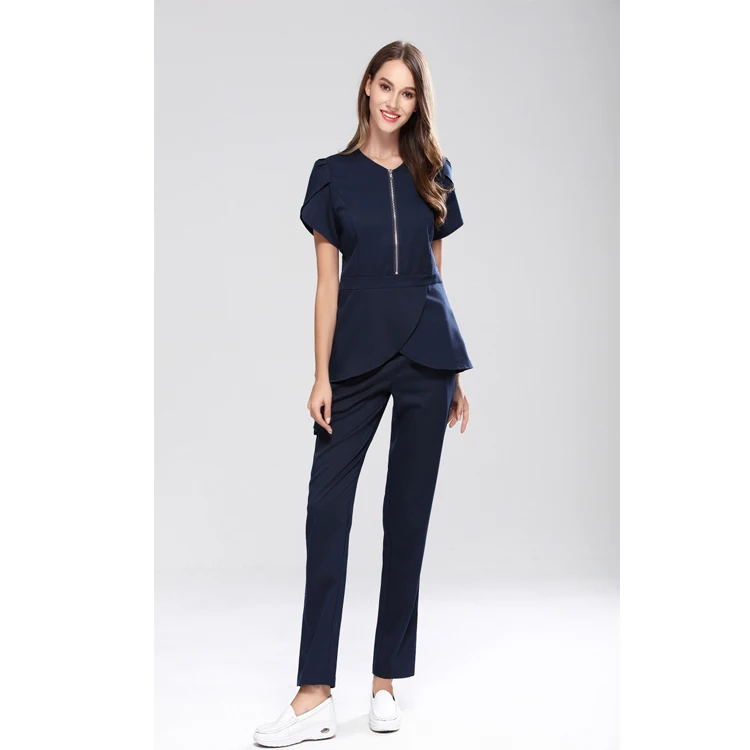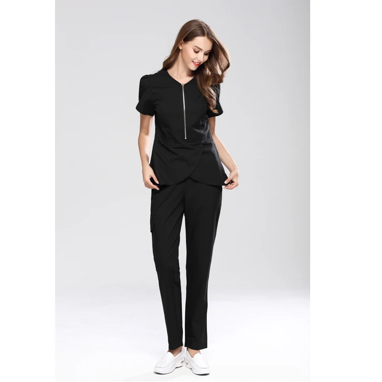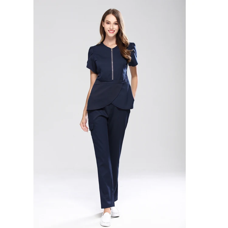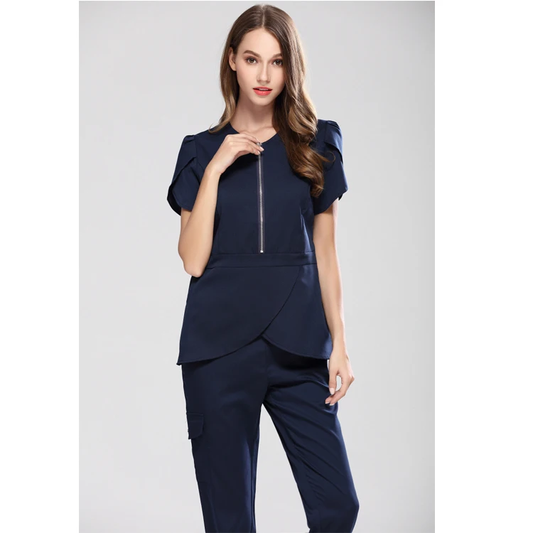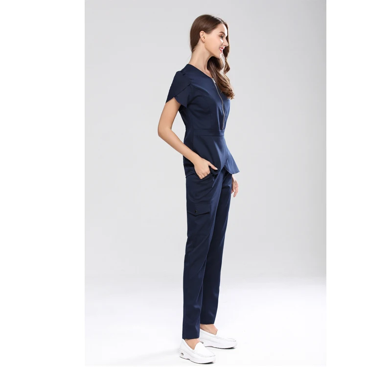 Metal Zipper Spa Medical Beauty Scrub Set Women's Slim Fit Dental Clinic Medical Scrub Uniforms