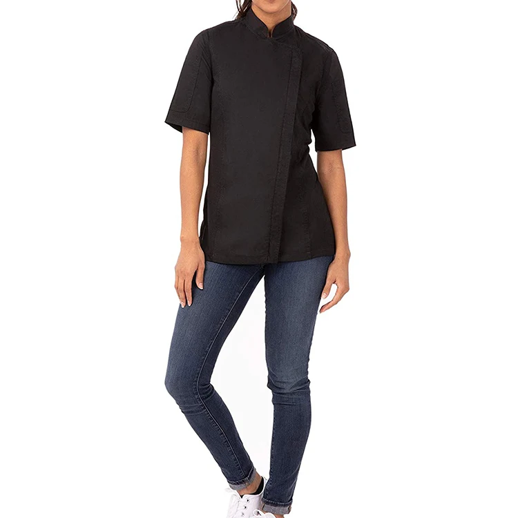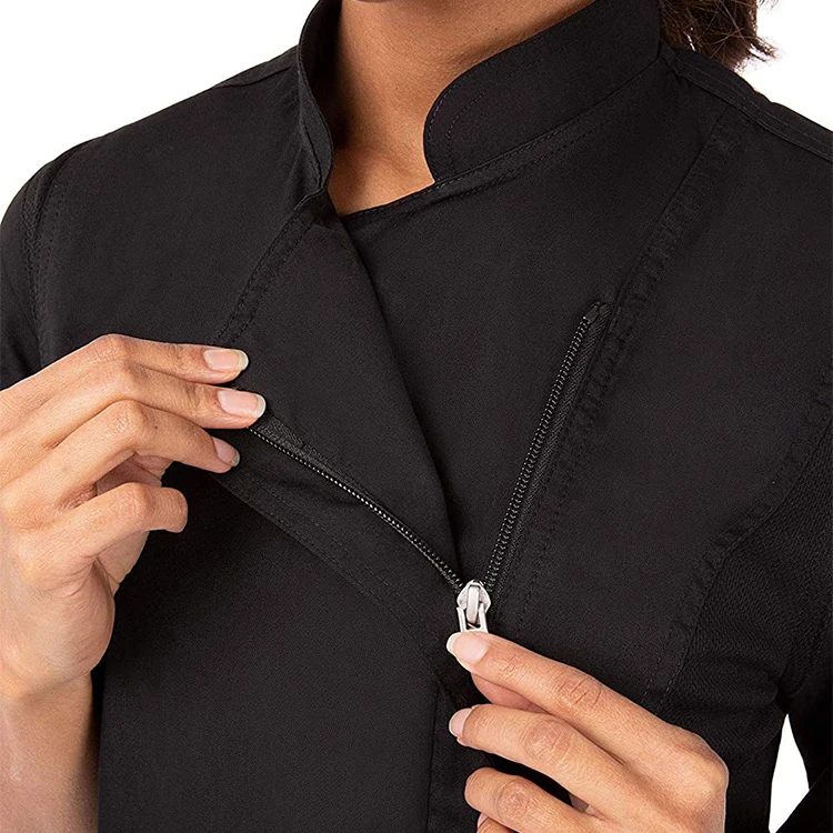 Chef Uniform Restaurant Bar Kitchen Uniforms Short Sleeve With Zip for Women Chef Jacket Chef Shirt